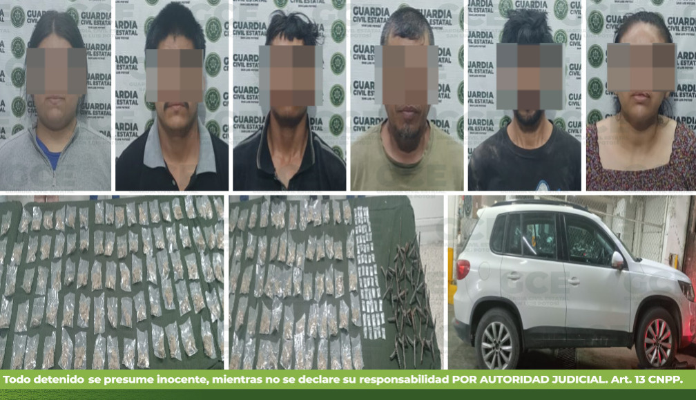 VILLA JUÁREZ, S.L.P.– En una operación estratégica de combate frontal al crimen organizado, la Guardia Civil Estatal (GCE) logró la captura de seis presuntos integrantes de una célula delictiva que operaba en la Zona Media. Entre los detenidos se identificó a dos objetivos prioritarios señalados como generadores de violencia y actores directos en delitos de privación ilegal de la libertad.