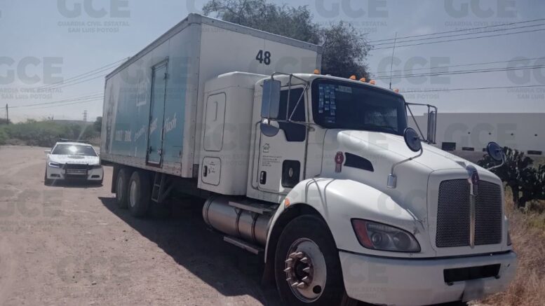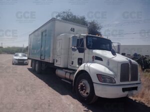 Por último, en el eje 136 con intersección en las vías México-Laredo en la Zona Industrial, elementos de la GCE aseguraron un vehículo tipo Torton, abandonado, marca Kenworth, color blanco con verde, con placas de esta entidad, modelo 2017 el cual contaba con reporte de robo del 19 de julio de 2022.