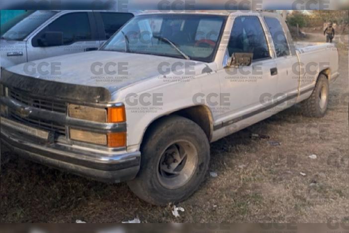 Las autoridades desplegaron un dispositivo en un predio rústico, luego de recibir alertas sobre posible movimiento de un grupo delictivo, en donde realizaron el hallazgo de tres camionetas con las siguientes características: Dodge, línea Durango, modelo 2013, sin placa, con reporte de robo en el municipio de Matehuala, una camioneta Ford tipo Pick Up, modelo 2007, que tenía en su interior 10 artefactos conocidos como “poncha llantas”. Por último, una unidad Chevrolet tipo Silverado, modelo 1995, de procedencia extranjera, fue asegurada también, con siete objetos “poncha llantas”.