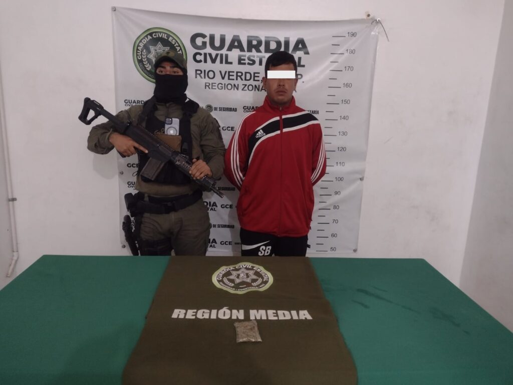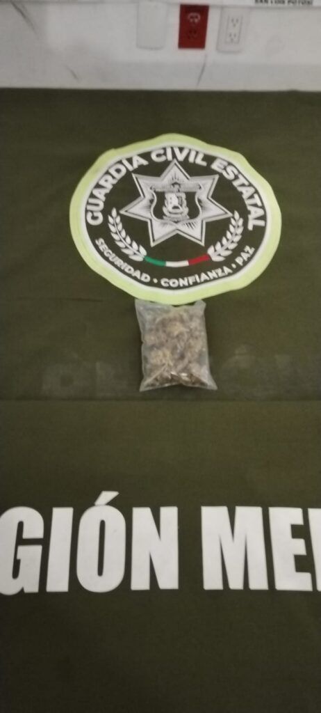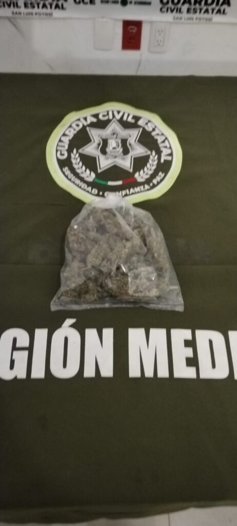 - Doble Detención en Paso Real (Rioverde): En la calle Denver de la localidad Paso Real, elementos de la GCE detuvieron a Juan Pablo N (26 años) y Humberto N (27 años). Se les aseguraron dos bolsas de nylon transparente conteniendo hierba verde y seca con características similares a la marihuana, con un peso aproximado de 69.9 gramos en total (8.9 g y 61 g).