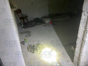 En la parte posterior de la vivienda se halló una camioneta marca Honda CRV en color gris sin placas de identificación y también una camioneta tipo pickup en color blanca con franjas negras.