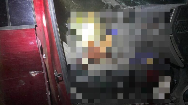 Al exterior de la vivienda, dentro del mismo predio, se localizan tres camionetas tipo Pick Up, y dentro de una de ellas con placas del Estado de Tamaulipas, se localiza una persona del sexo masculino y a su costado en el asiento del copiloto una persona del sexo femenino, y entre el asiento delantero un arma larga calibre 7.62 × 39 de las llamadas cuerno de chivo, así como múltiples poncha llantas confeccionados de manera artesanal.
