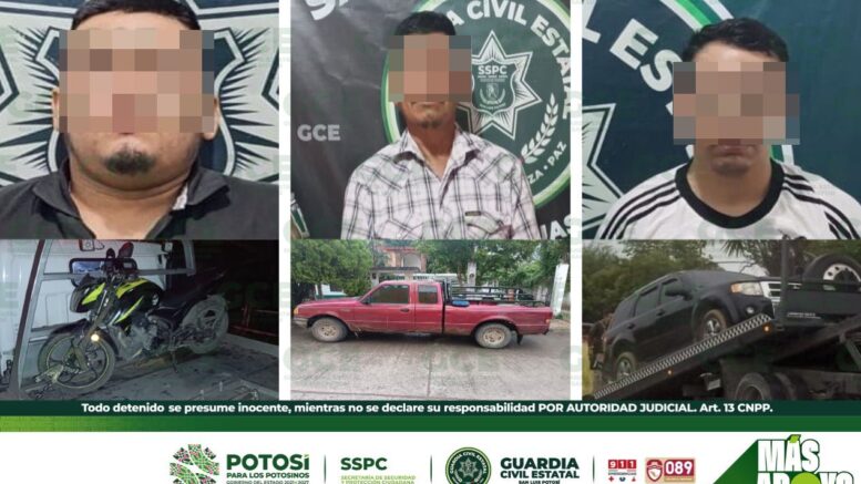 S.L.P.- Derivado de los operativos de seguridad, que son efectuados por la Guardia Civil Estatal (GCE) para inhibir actos ilícitos, tres hombres fueron detenidos, por probables delitos contra la seguridad de tránsito.