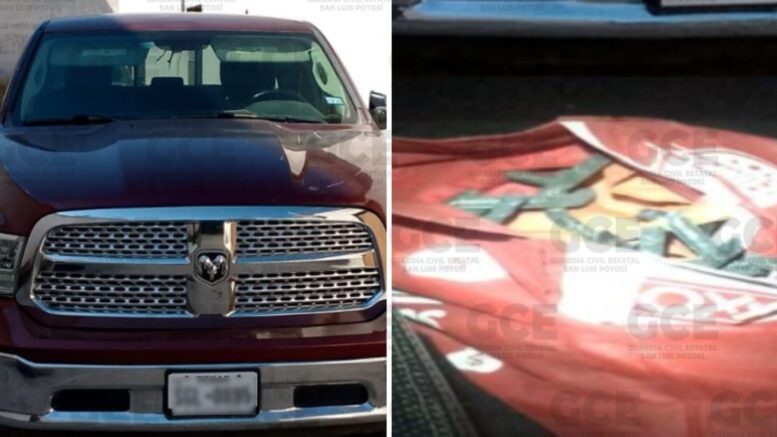 Cedral, S.L.P.- Fuerzas de seguridad de la Guardia Civil Estatal, localizaron una camioneta con reporte de robo en cuyo interior se descubrieron artefactos metálicos conocidos como “poncha llantas”.