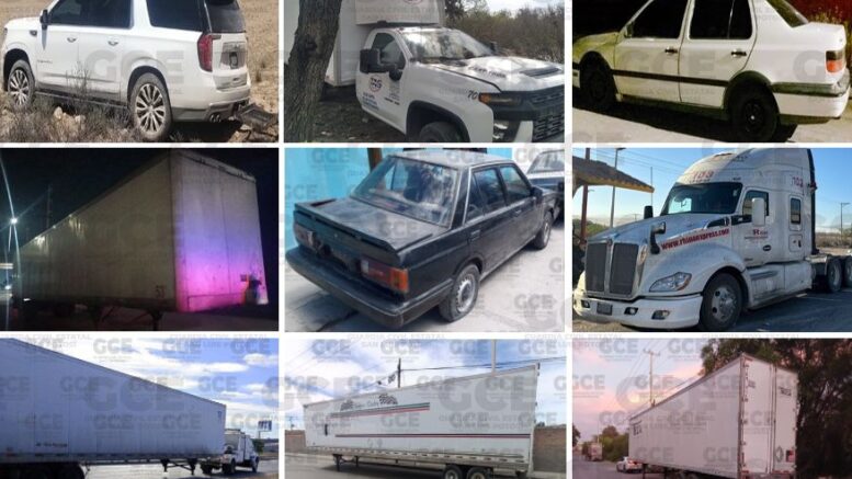 Uno de los hallazgos fue en la lateral de la carretera 57 México-Querétaro: una unidad tipo caja seca, color blanco, fue recuperada en menos de dos horas de su hurto, en el municipio de Villa de Zaragoza. La unidad porta placas del Estado de Nuevo León. En el bulevar Gómez Morín, una unidad tipo caja seca, color blanco, fue recuperada por agentes estatales, tras el seguimiento de su hurto en el municipio de Villa Hidalgo.