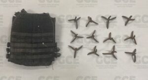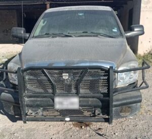 El Operador Interviniente informó a los agentes de la GCE que la unidad Dodge, color arena, de doble cabina, de procedencia extranjera, contaba con reporte de robo en el mes de septiembre del año en curso, en la comunidad La Sauceda, perteneciente al municipio San Diego de la Unión en el Estado de Guanajuato. Tras inspeccionar la unidad, se percataron de que en su interior se encontraba un chaleco táctico, así como 12 artefactos metálicos conocidos como “poncha llantas”.