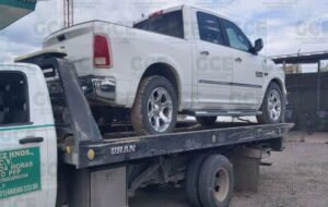 - Una camioneta Dodge Ram blanca con placas del estado de Coahuila.