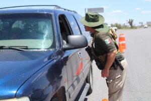 En el puesto de control de carretera a Matehuala a la altura del lugar conocido como “El Avión” se detuvo a un objetivo criminal generador de violencia en la zona metropolitana, junto con otra persona, transportaban droga, armas y dinero en efectivo. Ahí también se han detenido a dos personas por la portación de arma de fuego y droga.