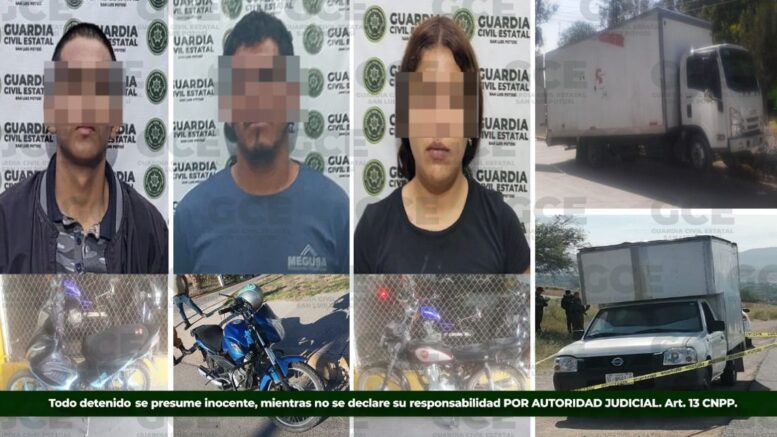 San Luis Potosí, S.L.P. — En acciones orientadas al combate del robo de vehículos, agentes de la Guardia Civil Estatal (GCE) lograron la localización y aseguramiento de cinco unidades motorizadas con reporte de robo en distintos puntos del estado. Durante los operativos también fueron detenidas tres personas, presuntamente relacionadas con este delito.