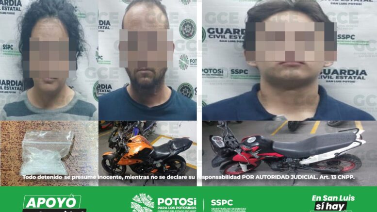 Otro de los hechos tuvo lugar en el Barrio de Tlaxcala, una segunda pareja fue detectada por autoridades estatales; Mayra “N” de 34 años de edad y Luciano “N” de 36 años, fueron detenidos a bordo de una motocicleta marca Italika, modelo 2020, color amarillo, reportada como hurtada en días anteriores, además se les aseguró una dosis de “cristal”.