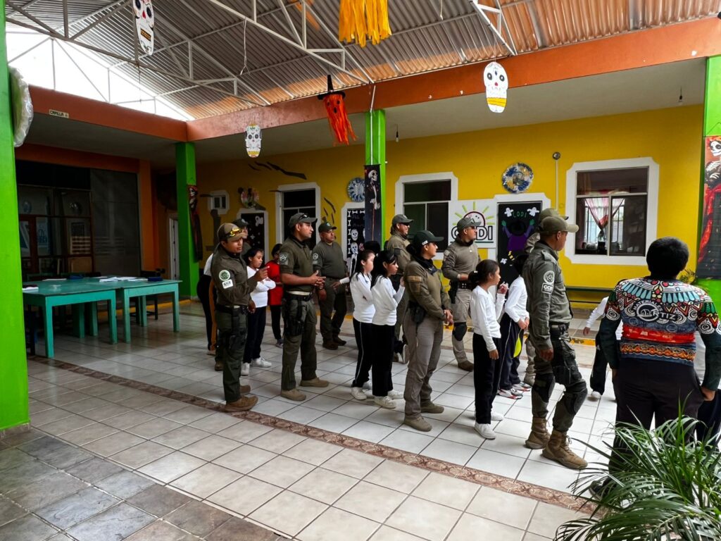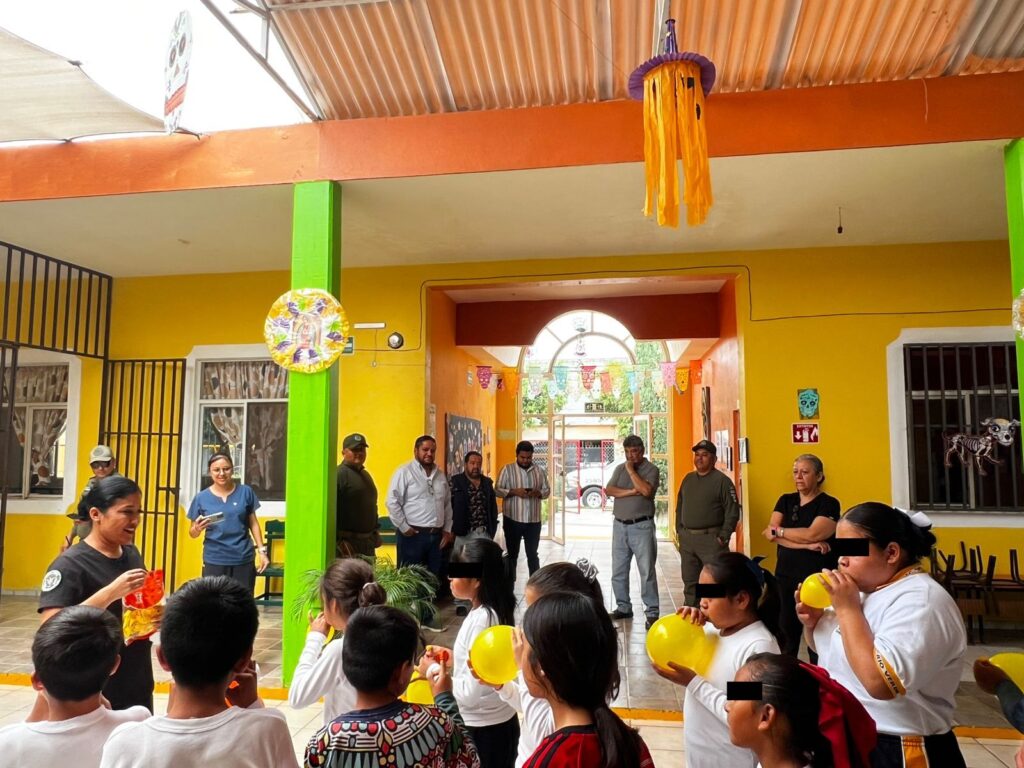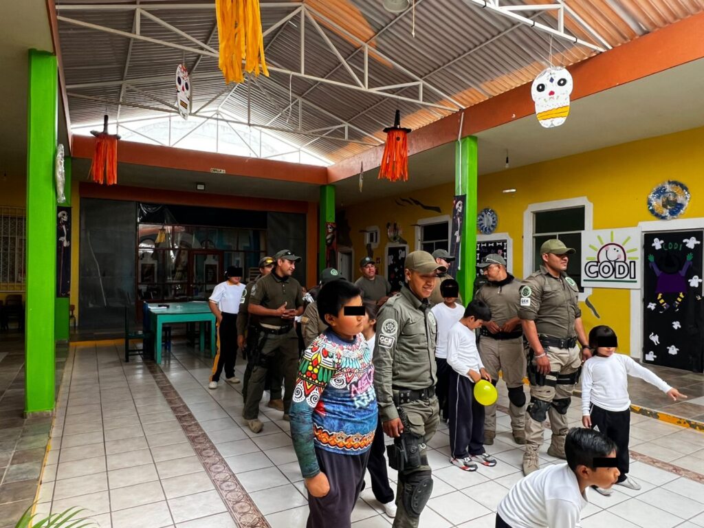 Por instrucción directa del Jefe de Región, Comandante Óscar Hernández Hernández, elementos de la GCE acudieron al centro infantil para realizar diversas dinámicas de convivencia con los menores.