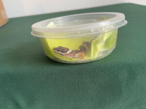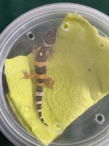 Un Gecko Leopardo, especie protegida por las normas mexicanas, fue rescatado por