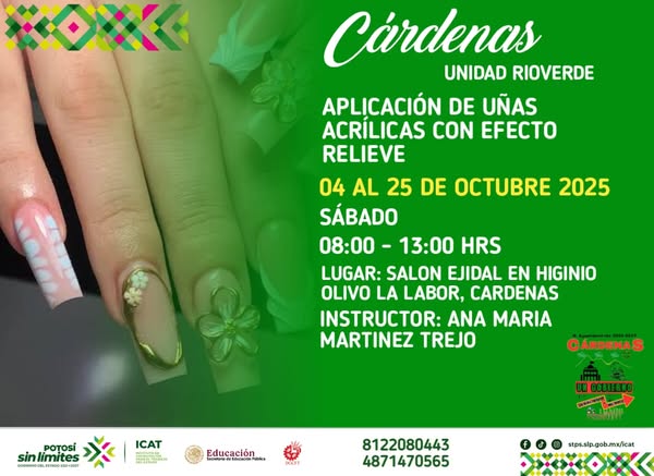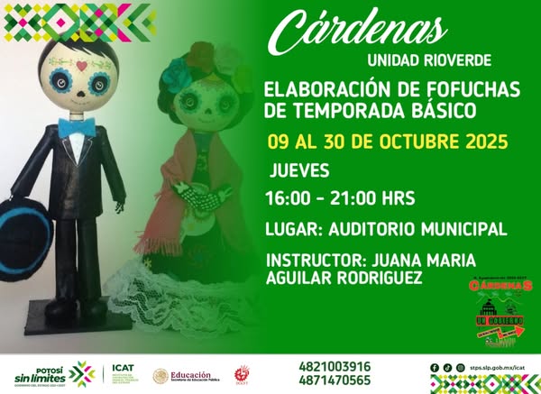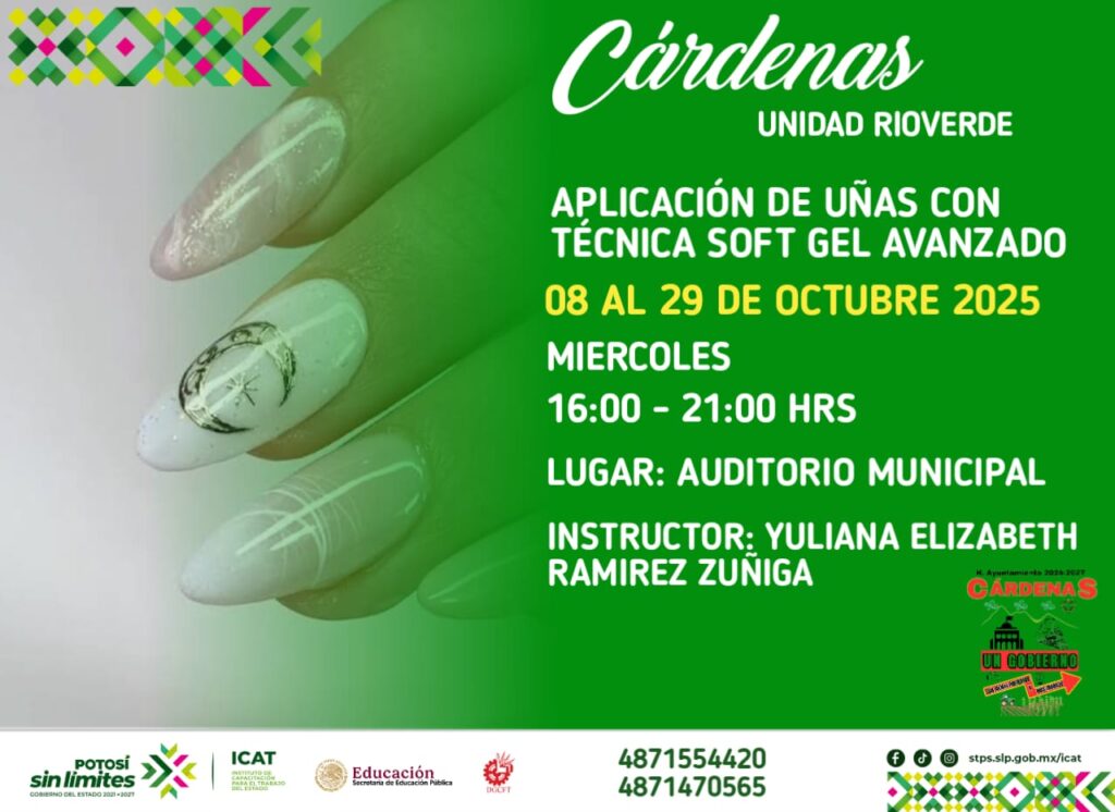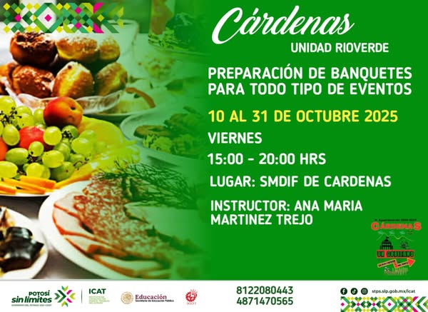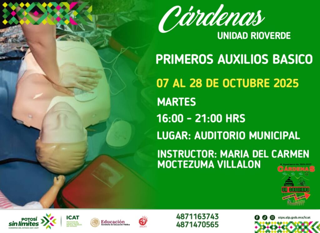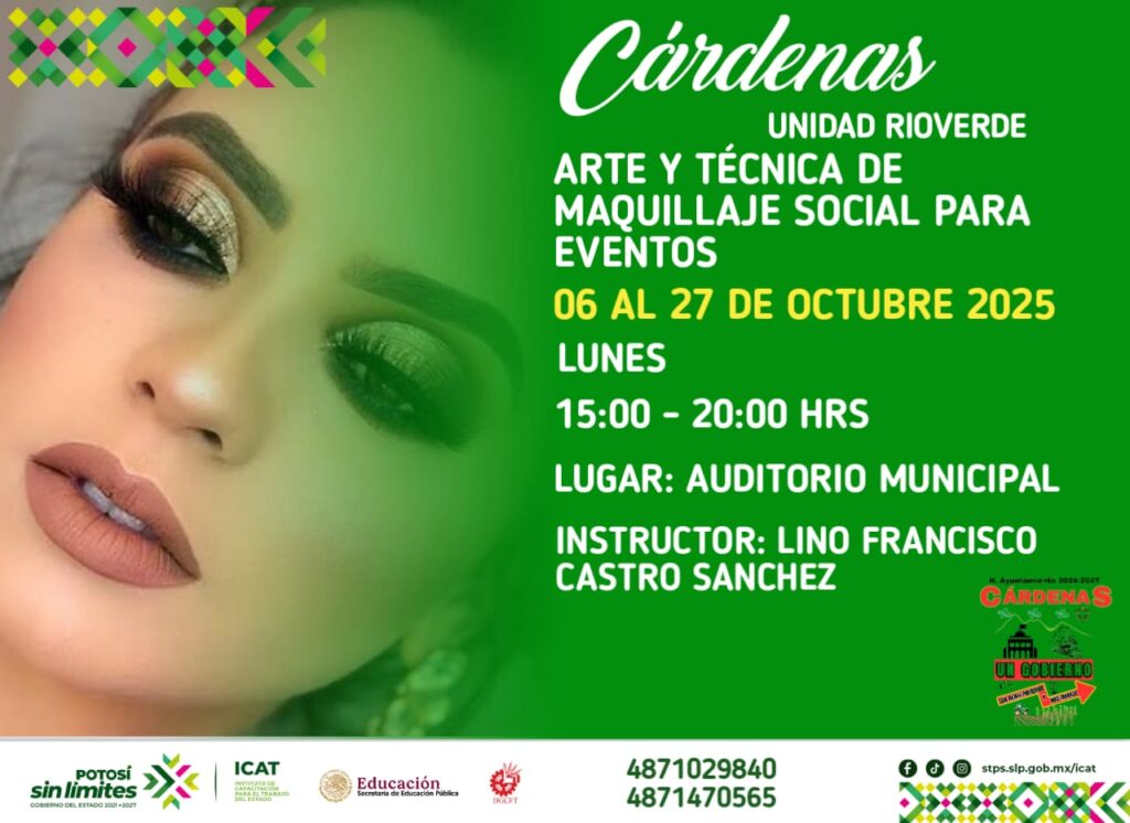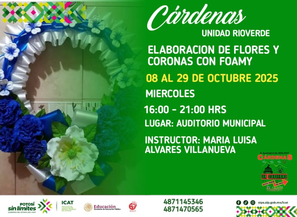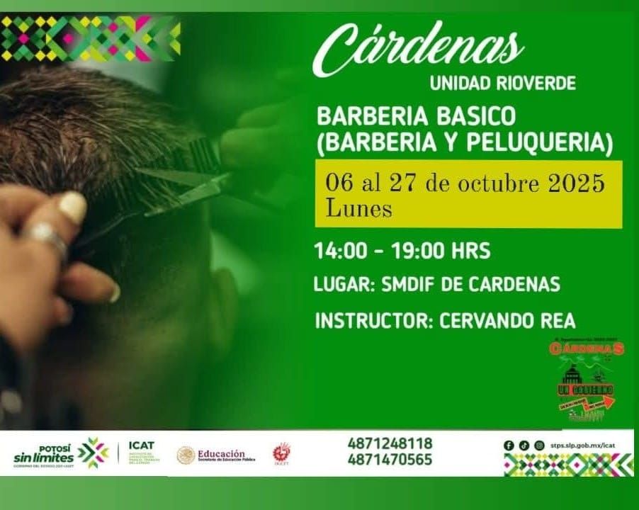 Cárdenas, S.L.P. – Con el objetivo de fomentar el desarrollo profesional y personal de sus habitantes, el H. Ayuntamiento de Cárdenas 2024-2027, encabezado por el C.P. Edgar Miguel Hernández Aguilar, se ha unido al Instituto de Capacitación para el Trabajo (ICAT) Unidad Rioverde para ofrecer una serie de cursos de capacitación gratuitos durante el mes de octubre.