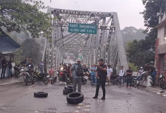 Esta mañana los habitantes siguieron su protesta y tomaron el puente de fierro en Tamazunchale el cual se encuentra colapsado ante el bloqueo del puente metálico desde la noche de este miércoles.