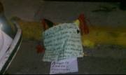Sobre la piñata había un mensaje escrito en cartulinas, presuntamente del grupo que se adjudica el hecho. (twitter.com/lasillarota)