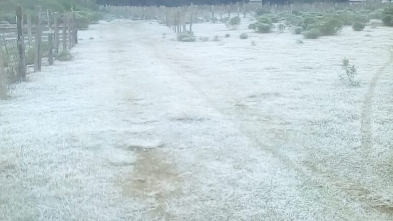 La mañana de hoy se registraron las temperaturas más bajas del estado en la comunidad de la trinidad en el municipio de Xilitla , donde por segunda vez en lo que va del año se registra la caída de escarcha y hielo en las partes altas de la sierra .