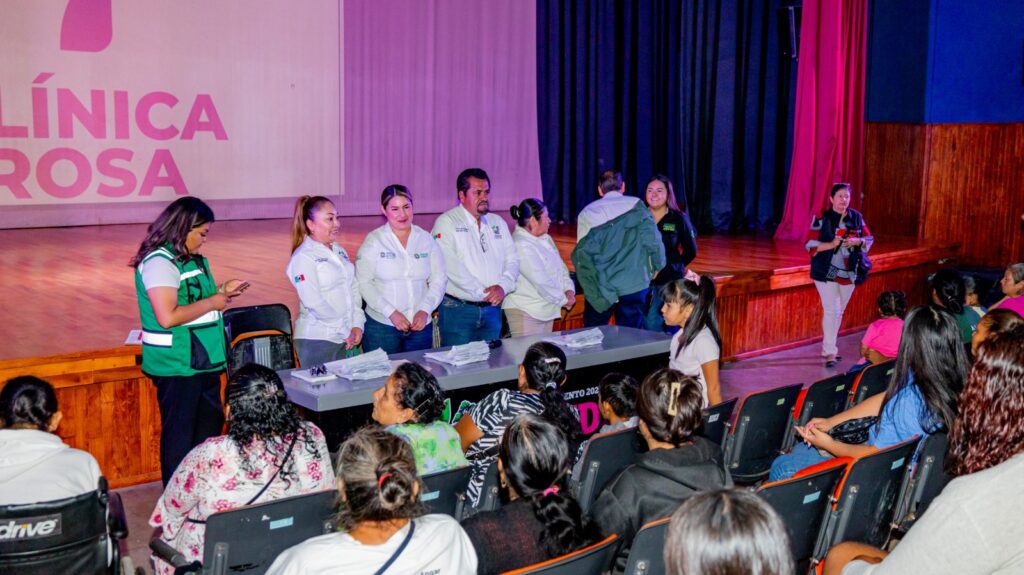 Durante su mensaje, Carmen Aguirre explicó que la Tarjeta Rosa garantiza atención médica integral gratuita y sin límite en la Clínica Rosa de Ciudad Fernández, incluyendo consulta general, atención dental, tratamientos, estudios de laboratorio, medicamentos del cuadro básico y servicio de optometría, además de dotación anual de lentes, asimismo, las titulares podrán incorporar a sus hijos menores de edad y a familiares con discapacidad, quienes también accederán a estos servicios sin costo.