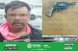 El presunto fue detenido sin que ocasionara algún daño o agravio a algún trabajador, al momento de su arresto se le aseguró un arma de fuego tipo revólver, calibre .22 con nueve cartuchos útiles, la cual llevaba fajada a su cintura.