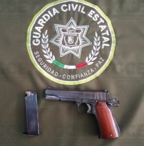 Los hechos ocurrieron en el ejido Ampliación La Hincada, lugar en donde los uniformados detectaron al conductor de una camioneta marca Nissan, tipo Pick Up, color blanco, con placas de esta entidad, quien fue detenido después de que los agentes policiacos le aseguraran un arma de fuego calibre .45, un cargador y 7 cartuchos útiles.
