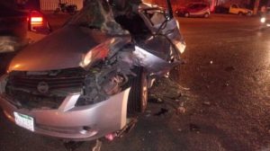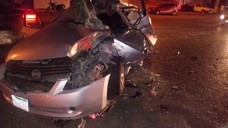 El Conductor de vehículo Nissan Altima se impactó contra camión urbano y quedó prensado en el interior.