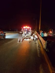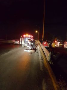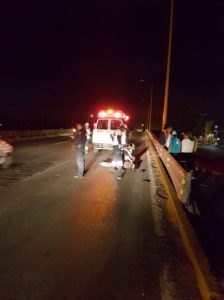 El cuerpo del hombre quedó tirado en uno de los carriles del Puente atropellada en la carretera matehuala subiendo el puente de la entrada principal a Pavón con dirección del distribuidor Juárez al anillo periférico