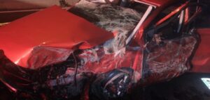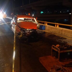 Hombre pierde la vida y dos más quedan prensados en accidente en carriles centrales de carretera a Matehuala por acceso norte
