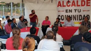 A través del programa “Alcalde en Tú Comunidad” asistió el Comisariado Martín Valero Maya, la Juez Hortencia Juárez Loredo, el presidente del comité vecinal Noé Gustavo Bueno Rivera y en representación de familias la señora Constantina Loredo Aguilar, expuso varias peticiones.