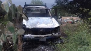 Encuentran camioneta incediandose en el camino a la comunidad de maravillas en la avenida Insurgentes en el kilometro 1.5 camino de terracería a 100 metros de la carpeta asfaltada entre la maleza.