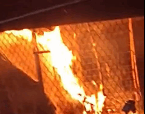Entre los objetos consumidos por las llamas se encuentran una mesa, un módem de internet, la mitad de un escenario de tarimas de madera, otra mesa y el cableado de luces led.