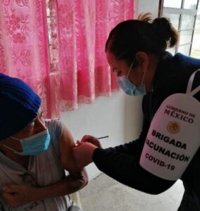 Aseguró que en esta importante e histórica acción, la aplicación de la vacuna se lleva a cabo por personal de enfermería de los Servicios de Salud, quienes se apoyan con los Servidores de la Nación, Guardia Nacional y SEDENA, garantizando que la población blanco reciba la dosis de la vacuna contra COVID-19.