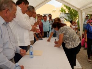 Este lunes inició el proceso de firmas para la entrega de 137 escrituras del Fraccionamiento bicentenario en ciudad Valles, evento en el que estuvo presente el alcalde Jorge Terán Juárez y José Federico de la Torre Rodríguez, Delegado en San Luis Potosí del Instituto Nacional del Suelo Sustentable (antes CORETT).