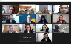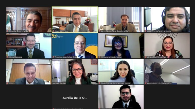 En el evento realizado el pasado 15 de febrero por la plataforma Zoom, el rector de la UASLP Dr. Alejandro Javier Zermeño Guerra estuvo acompañado del Dr. Isaac Compeán Martínez, director de COARA; M. I. Jorge Pérez Secretario Académico; Mtra. Maricela Ramírez, directora de Evaluación y Prospectiva; Dra. María del Rocío Terrones, Secretaria Académica COARA y el Dr. Juan Manuel Espinosa, coordinador de la Licenciatura en Mercadotecnia.