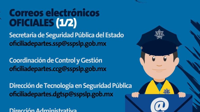 Secretaría de Seguridad Pública: oficialiadepartes.ssp@sspslp.gob.mx
