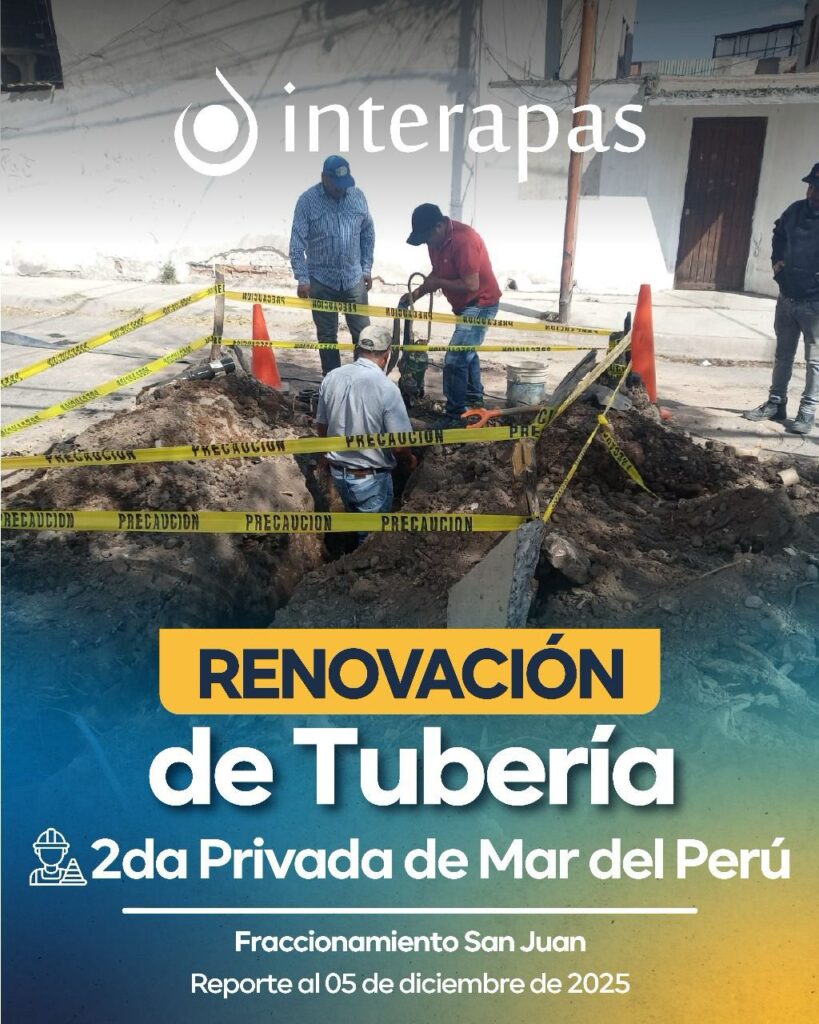 Esta obra forma parte del plan de modernización de la infraestructura hidráulica de INTERAPAS, posible gracias al pago puntual de los usuarios y al programa “Acaba tu deuda de una vez”.
