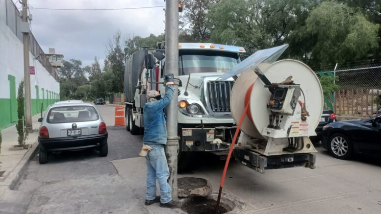 SLP.- INTERAPAS continúa con los trabajos preventivos ante la temporada de lluvias que se presenta en la Zona Metropolitana, con el objetivo de mantener en buen estado la red sanitaria y evitar taponamientos que puedan generar fugas o encharcamientos.