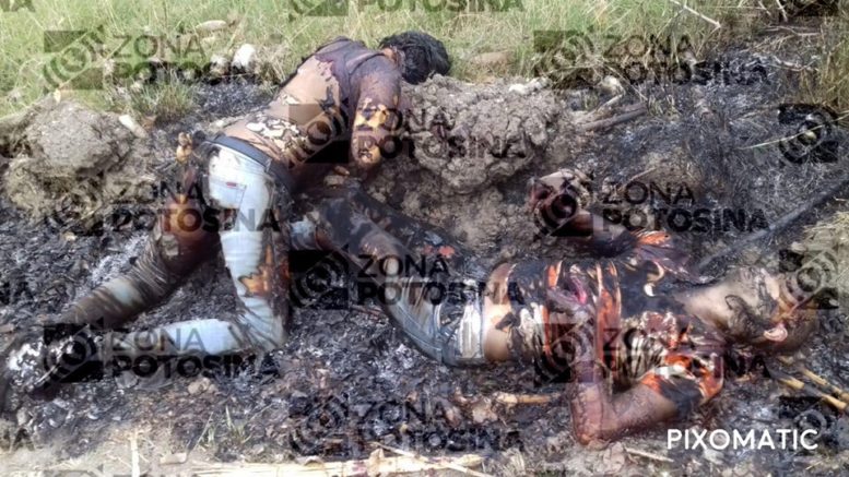 El lugar se localiza a 500 metros de la carretera Valles-Naranjo, donde ya se encontraban como primeros respondientes elementos de la policía estatal, teniendo a la vista el cuerpo semi calcinado de un hombre de aproximadamente 25 años y el de una mujer de aproximadamente 20 años de edad.