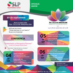 El evento inaugural se realizará el lunes 3 de septiembre a las 9:00 hrs en el Auditorio “Pedro Antonio de los Santos” ubicado en la planta alta del Palacio de Gobierno, en donde asistirán titulares de las dependencias gubernamentales. Al término del evento se realizará la conferencia: “Conociendo la Psicología Positiva” a cargo de Lucrecia Espinoza Mendizábal, académica de la Universidad Tec Milenio.