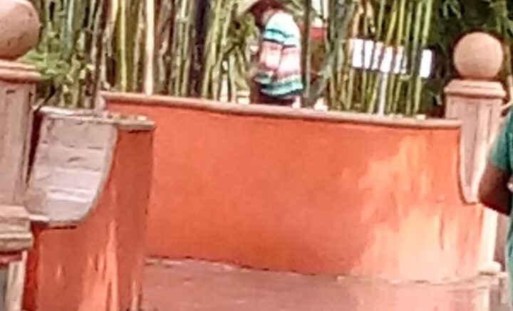 Esta mañana fue sorprendido en una gráfica que hicieron llegar a la redacción a un hombre haciendo sus necesidades fisiológicas en el jardín principal ante la mirada de policías que se encontraban en el módulo .