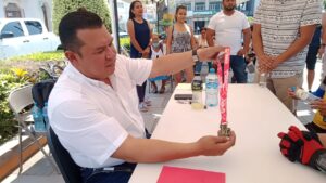Jesús Monsiváis aprovechó la Jornada de Atención Ciudadana y junto a Javier Salazar Torres de Cabritos Bike quien agradeció también el apoyo del Presidente Municipal, le entregaron una medalla con el lema “La Capital del Mundo” por las facilidades otorgadas en la realización de eventos con causa.