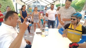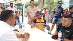 Jesús Monsiváis aprovechó la Jornada de Atención Ciudadana y junto a Javier Salazar Torres de Cabritos Bike quien agradeció también el apoyo del Presidente Municipal, le entregaron una medalla con el lema “La Capital del Mundo” por las facilidades otorgadas en la realización de eventos con causa.