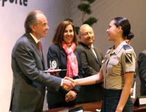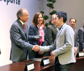 Los deportistas Melissa Oviedo Cárdenas de la disciplina taekwondo, el atleta Arturo Israel Reyna Tristán; Rubicel de la Cruz Torres deportista adaptado; Juan Martín Castillo Cardona, entrenador y Armando Emmanuel Loredo Méndez, promotor deportivo recibieron de manos del mandatario Estatal el premio Estatal del Deporte 2017.