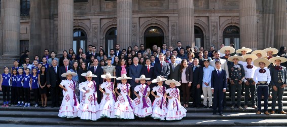 Acompañado la presidenta de la Junta Directiva del DIF Estatal Lorena Valle Rodríguez, el mandatario estatal entregó las menciones honoríficas y los premios a los ganadores tanto del deporte, como del arte y la cultura.