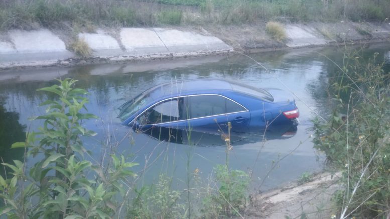 La tarde del sábado Un joven perdió el control de su vehículo y cayó al canal de la media luna solo se registraron daños materiales de la unidad que quedo en las aguas del canal .