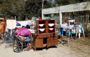Los elementos policiales ejecutaron una orden del juez  quienes desalojaron a una mujer de 70 años de edad, identificada como Hortencia, con su hijo Ramiro, quien está postrado en una silla de ruedas, pues tiene amputada una pierna.