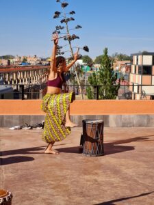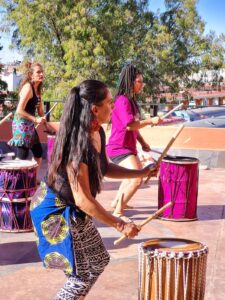 Durante esta jornada de actividades la maestra Maríagbe estará presente para orientar a las y los estudiantes sobre la técnica de baile y escucha de la música en vivo. Y para amenizar, Lophophora percusión.