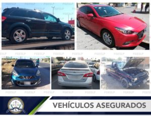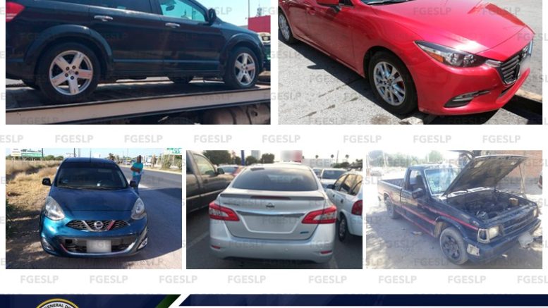 SLP. – Agentes de la Segunda Coordinación de Vehículos de la Dirección General de Métodos de Investigación, lograron la recuperación de cinco unidades con reporte de robo vigente, las cuales fueron puestas a disposición de la autoridad competente para que de inmediato sean regresadas a sus legítimos dueños, informó la Fiscalía General del Estado de San Luis Potosí (FGESLP).