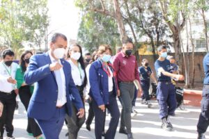 Como parte de las acciones de Transformación que encabeza el Presidente de la República, Andrés Manuel López Obrador, este martes la Maestra Delfina Gómez Álvarez, Secretaria de Educación del Gobierno de México supervisó las obras realizadas a través del programa “La Escuela es Nuestra”, en la colonia El Mezquital de la capital potosina.