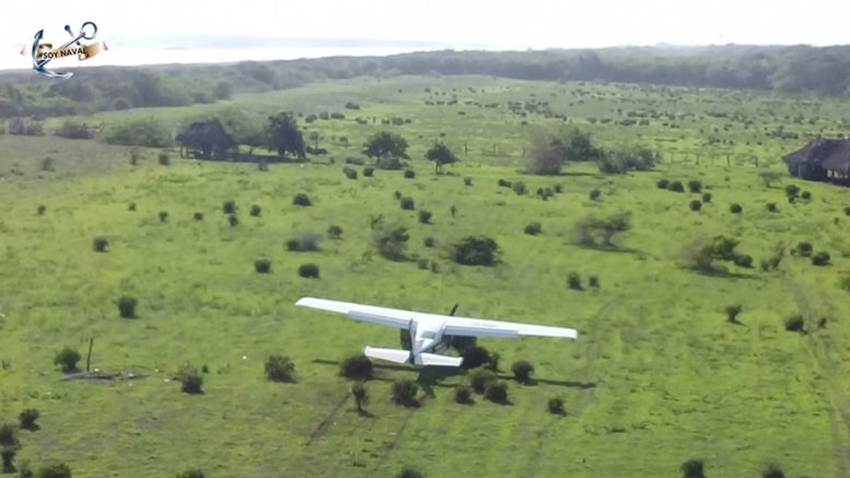 Posteriormente la tripulación del helicóptero procedió a dirigirse al punto logrando avistar una aeronave en la zona, misma que al percatarse de la presencia de la unidad aeronaval de la Armada de México, comenzó a realizar patrones de vuelo erráticos y dirigirse hacia el mar, por lo que se procedió a darle seguimiento; luego de unos minutos la avioneta CESSNA 120, se dispuso a realizar un aterrizaje en un área despejada, en donde los tripulantes de la misma se dieron a la fuga entre el terreno, iniciando un operativo por aire, mar y tierra, para su aseguramiento.