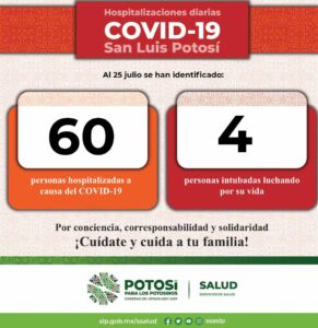 En la Jurisdicción Sanitaria I se detectaron 598 de los nuevos casos; 70, en la Jurisdicción Sanitaria II de Matehuala; 20, en la Jurisdicción Sanitaria III de Villa de Pozos; 98, en la Jurisdicción Sanitaria IV de Rioverde; 66, en la Jurisdicción Sanitaria V de Ciudad Valles; 44, en la Jurisdicción Sanitaria VI de Tamazunchale; 40, en la Jurisdicción Sanitaria VII de Tancanhuitz y 14 nuevos contagios en personas residentes de otra entidad.