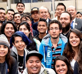 Por la mañana, en la Plaza del Estudiante, en la Zona Universitaria de la UASLP, el mandatario potosino fue recibido por la comunidad universitaria, alumnos, catedráticos, directores, ex rectores y ex alumnos, así como personal administrativo y el Rector Manuel Fermín Villar Rubio. Ahí, el jefe del Ejecutivo estatal hizo un exhorto a egresados de la institución a colaborar en la iniciativa para esta ocasión.